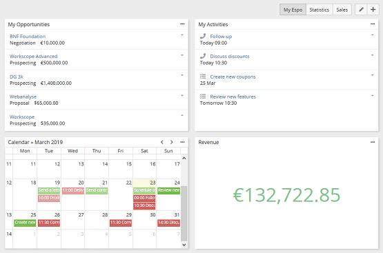 Marketer365 CRM’s easy-to-use dashboard with dashlets provides an instant access to the frequently used features and data related to sales activities. Divide your dashboard into various sections, arrange dashlets into desired order, and enjoy having quick access to the needed features at your fingertips.